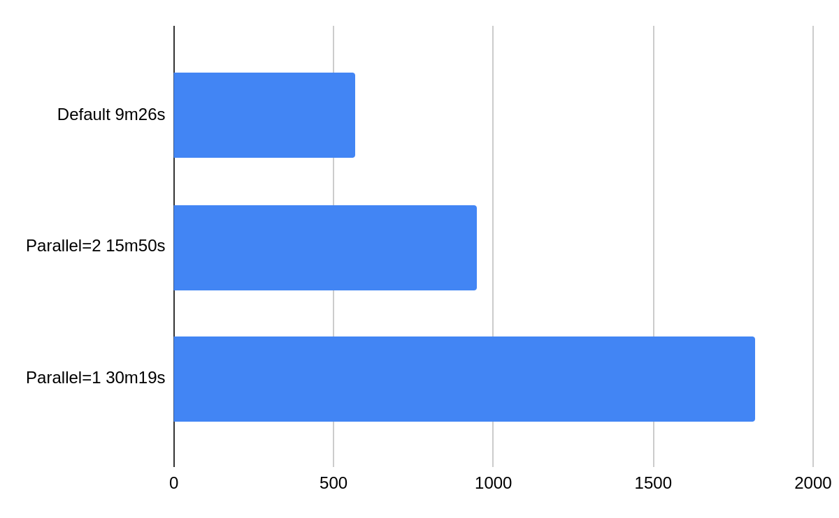 Each node can take part in at most one Scylla repair job at any given moment, but Scylla Manager can repair distinct replica sets in a token ring in parallel. This is beneficial for big clusters. The following diagram presents a benchmark results comparing different parallel flag values. In a benchmark we ran 9 Scylla 2020.1 nodes on AWS i3.2xlarge machines under 50% load, for details check this blog post